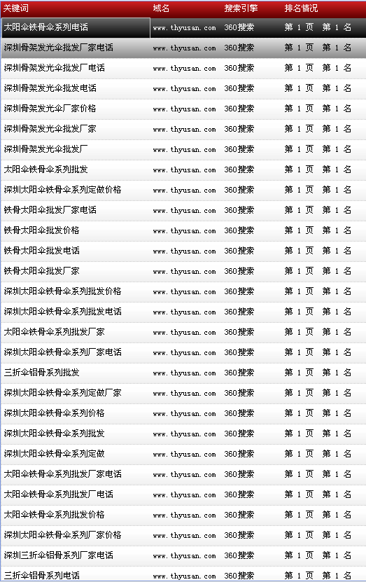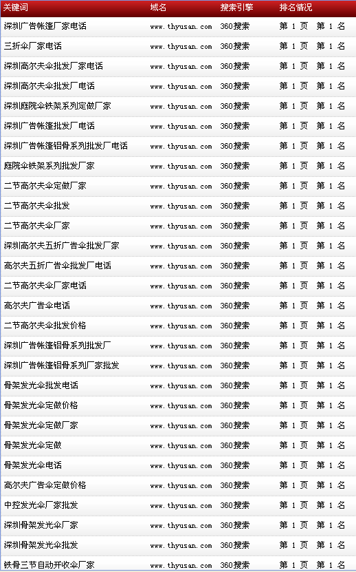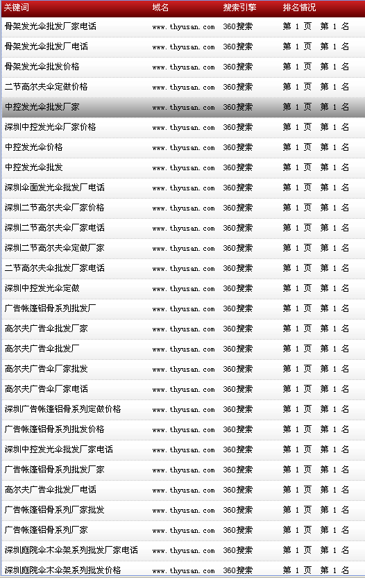 各關鍵詞在各大搜索引擎排名情況:
