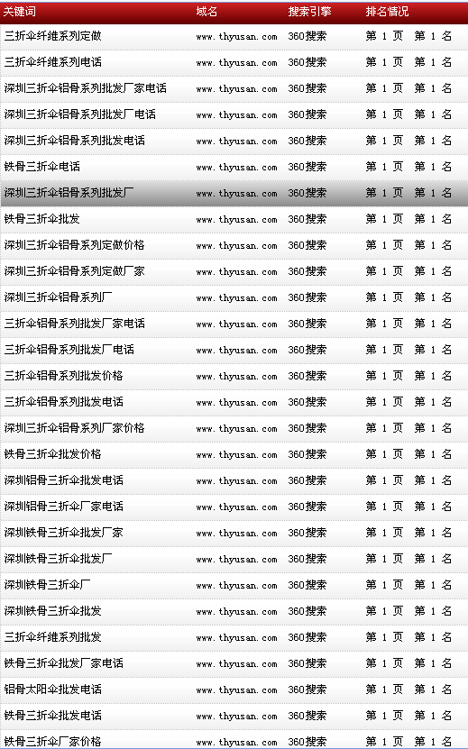 關鍵詞“三折傘定制“在好搜排名:首頁第一名